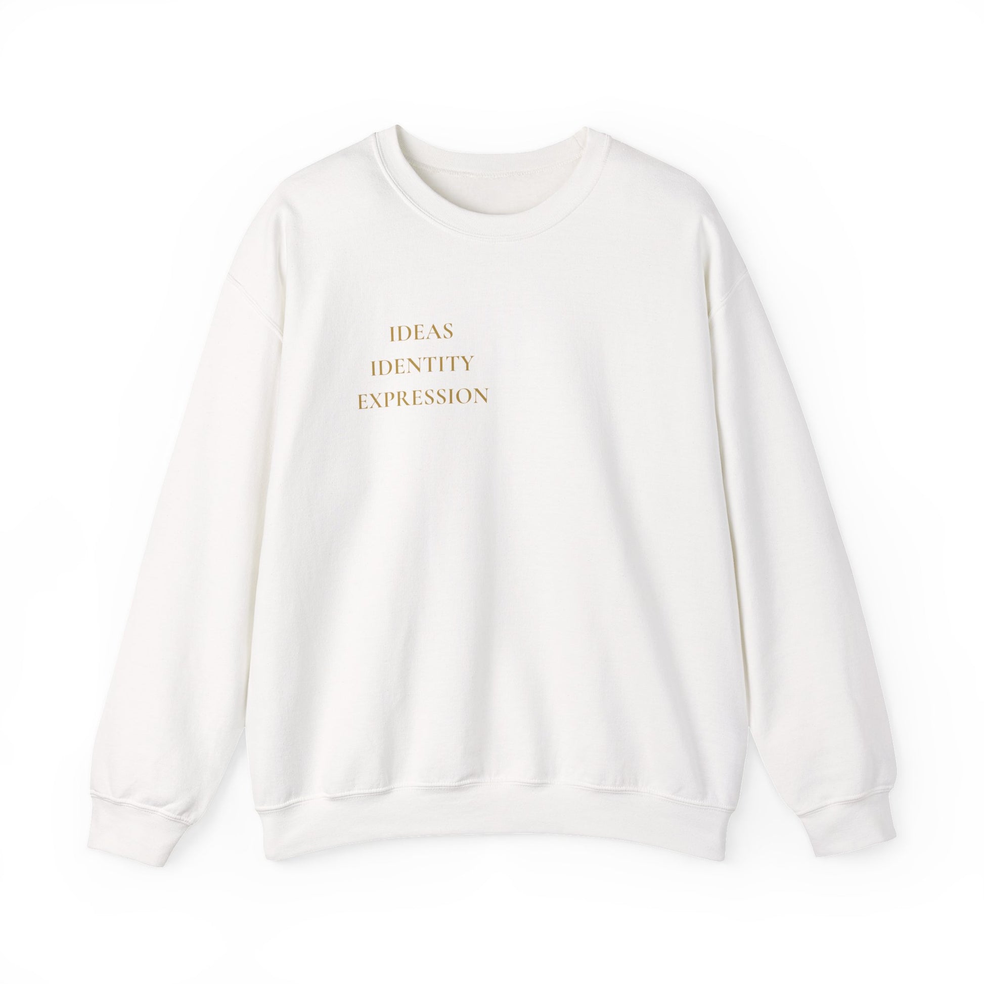 GJ Minimalist 'Ideas Identity Expression' Crewneck Sweatshirt — White Graphic Sweatshirt