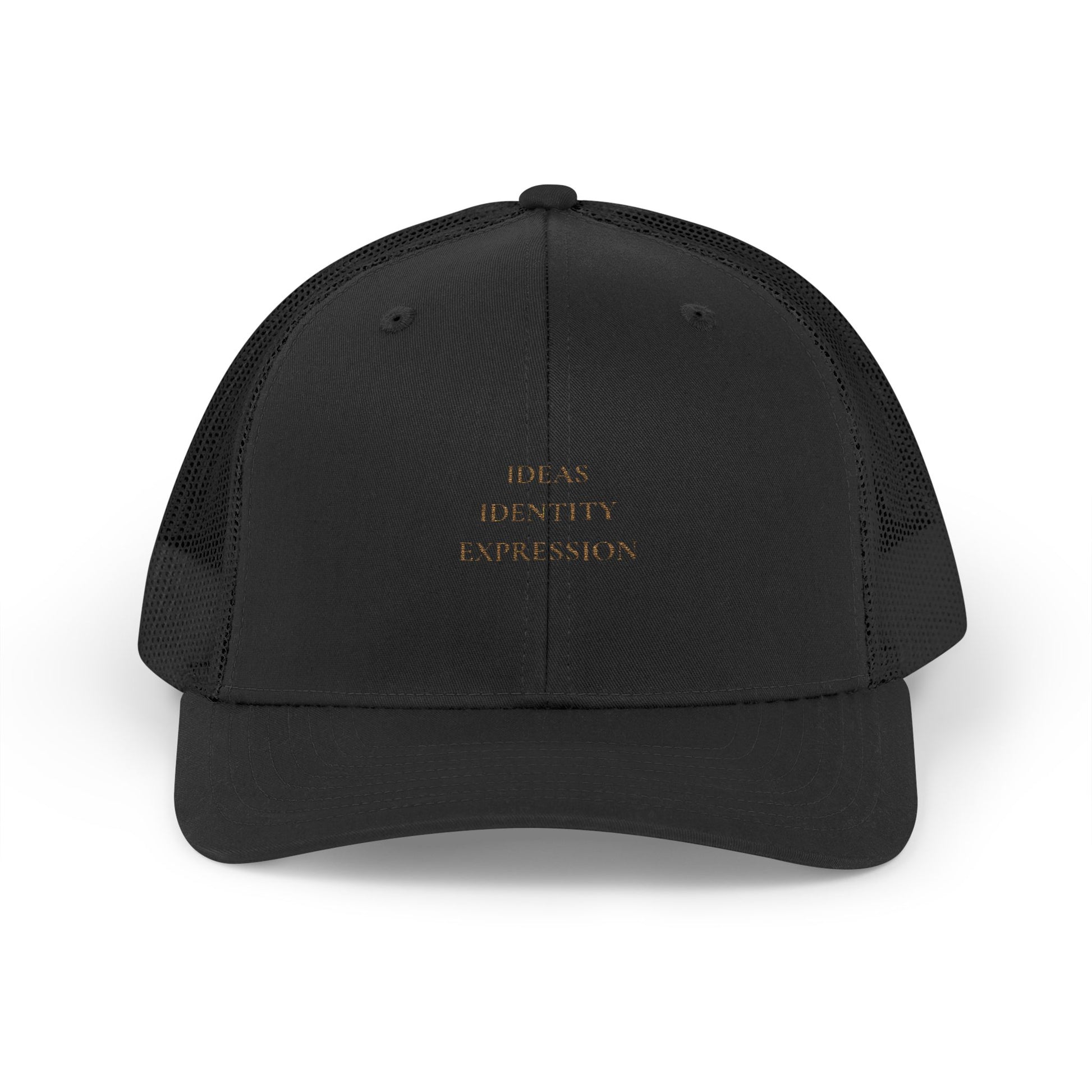 IDEAS. IDENTITY. EXPRESSION - Minimalist Black Mesh Trucker Cap — 'Boss, Beauty, Expression' Embroidered Snapback